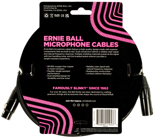 ERNIE BALL Mikrofonkabel, Gewebe, XLR/XLR, schwarz, 4,57 m