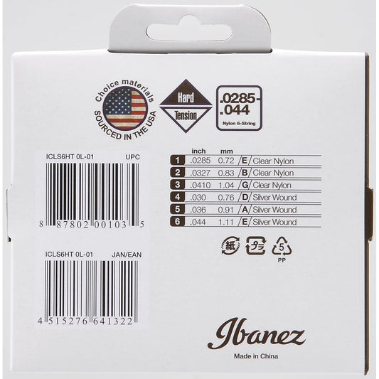IBANEZ String Set for 6 String Hard Tension, Clear Nylon / Silverplated Wound, ICLS6HT,